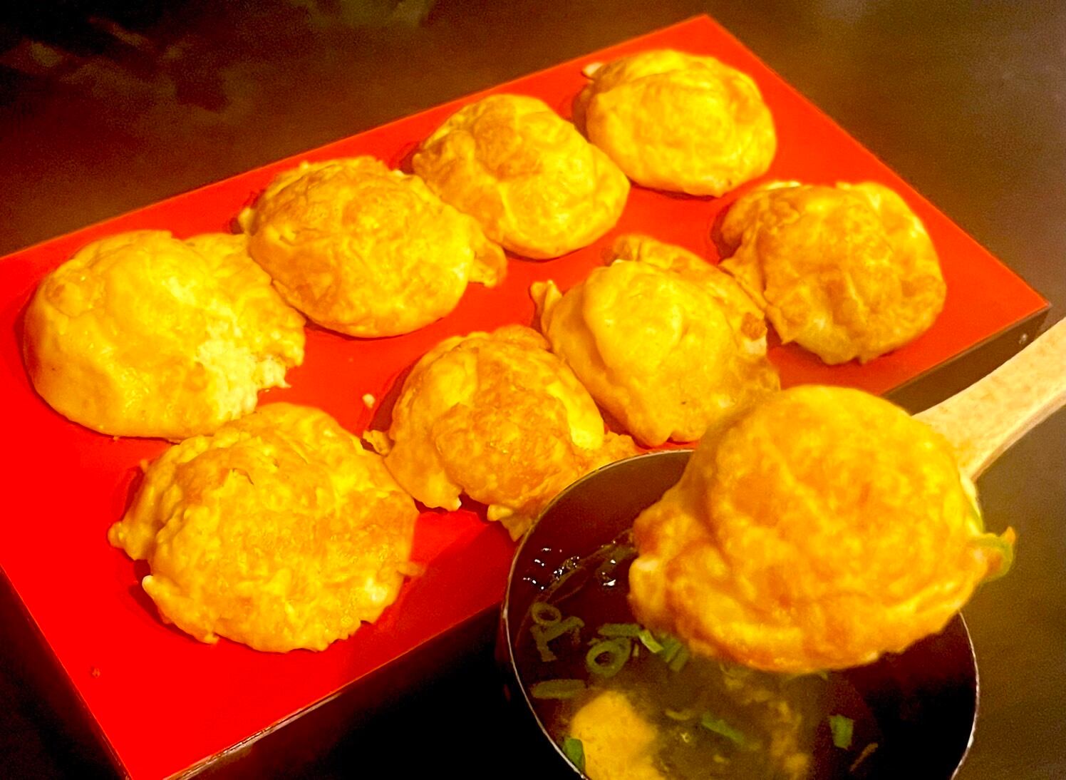 玉子焼き・蛸 (明石焼き風) 秘伝出汁醤油付